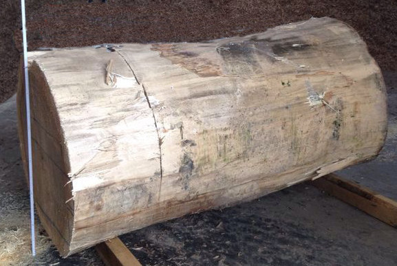 Die Entstehung eines Holzsofas beginnt mit einem dicken Stamm: